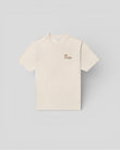 The Destin T-Shirt in Beach. A short sleeve tee crafted from premium GOTS Certified, 100% organic cotton with a classic ribbed crewneck. Detailed with printed branding on the chest and a large design on the back.