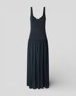 Robe longue sans manches esprit danseuse en jersey fin côtelé et jupe en voile de coton et viscose.